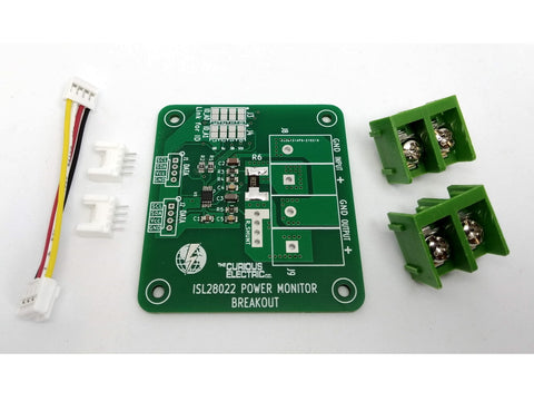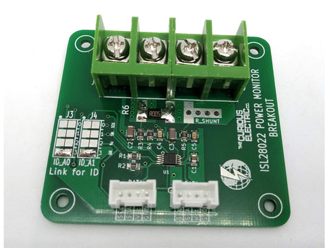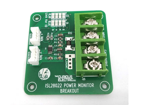 It can measure up to 60V DC and current through a shunt resistor with a shunt voltage of up to 320mV. We supply a 5mOhm shunt resistor, which can measure up to 32 A. This is measured with a high-accuracy analogue to digital converter with better than 0.3 %. It can have the shunt in the high or low side and can cope with negative shunt voltages.